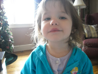 Today I had my first baby-sitting job! I baby-sat my 2 year-old cousin, Danielle, at my house for 2 hours! That might not seem like very long, but it was my first time. Danielle and I did puzzles (easy ones of course), swung on the swings outside, played in our blanket fort, ate snacks, played with my american girl stuff, played hide and go seek, drew pictures, looked at books, and I helped her decorate cards with stickers for her Mommy and Daddy! We had a great time! Here is a picture of her- (Isn't she cute? :-)